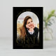 Esta simple tarjeta de graduación minimalista en negro y dorado sirve como invitación de graduación y como invitación para una fiesta de graduación, y presenta una foto en un marco de arco y una elegante tipografía moderna en Relieve metalizado de oro real.