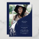 Invitación Con Relieve Metalizado Partido de Graduación Plata de Tassel Photo Navy