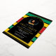 Esta elegante invitación a una fiesta panafricana de graduación es perfecta para celebrar sus logros académicos con sus seres queridos. El diseño es llamativo, con los icónicos colores rojo, verde, amarillo y negro de la bandera panafricana y los elementos de Relieve metalizado que le dan un toque de lujo y sofisticación. Con esta invitación, podrás mostrar tu orgullo por tu patrimonio e invitar a tus invitados a compartir tu momento de alegría. La parte trasera de esta tarjeta también deja un área para una foto adicional y una pequeña biografía acerca de los logros de tus graduados.