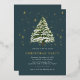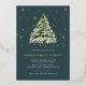 Invitaciones de fiesta simplista y festiva con un ilustracion acuarela de un árbol de Navidad rodeado de estrellas de Relieve metalizado metálico. El texto "FIESTA de NAVIDADES" también se muestra en Relieve metalizado real. El texto es totalmente editable (incluido el texto del evento). Oro en un fondo azul-verde oscuro.