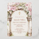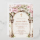 Invitación Con Relieve Metalizado Pink florals arch beige First Communion rose gold