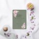 Send out this beautiful gold foil wedding invitation in Warm Eucalyptus Green with pink roses in the corners.