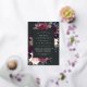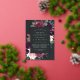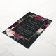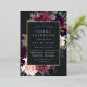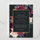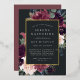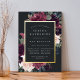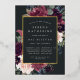 La invitación al mitzvah de murciélago floral de moda tiene un borde de morada de marsala, color púrpura rosa rubí y flores azules polvorientas, con frondosos follajes botánicos y vegetación y adornos de Relieve metalizado dorado. Personaliza con tu ceremonia de templo y detalles de celebración en letras modernas sobre un rico fondo de carbón.