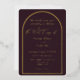 Send out this beautiful gold foil wedding invitation in Plum Noir Purple, with a gold arch and gold sparkles throughout the card.