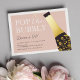¡Saca el champán! Las invitaciones para fiestas de cumpleaños para cumpleaños, fiestas de cumpleaños 21 o cualquier celebración de cumpleaños incluyen una botella de champán de Relieve metalizado negro y dorado con las palabras "pop the bubbly" en letras blancas de moda. Personalice con los detalles de su fiesta debajo.