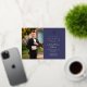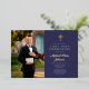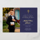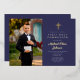 Invitación Con Relieve Metalizado Primera comunicación de Navy Blue Gold Script Boy