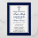 Elegante invitación a la comunidad azul de la marina y oro por primera vez sagrada con cruz. Marco de Relieve metalizado plateado. Cruz de Relieve metalizado plateado. Retirado.