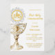 Invitación Con Relieve Metalizado Primera Comunión Cáliz Hostia