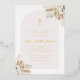 Relieve metalizado de arca de pampas bohemias cruza la primera tarjeta de invitación de la comunión. Los colores y el texto se pueden personalizar.