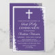 Invitación Con Relieve Metalizado Primera Comunión Real de Plata Lavanda Púrpura