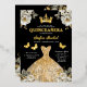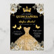 Invitación Con Relieve Metalizado Princesa de la Mariposa de Oro Floral Quinceanera