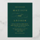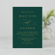 Invitación de bodas sencilla y clásica con nombres y detalles bodas mostrados en letras de Relieve metalizado dorado con acentos caligráficos en un oscuro fondo verde esmeralda. La invitación a la boda de Relieve metalizado dorado tiene un diseño de enrejado verde esmeralda y blanco. El diseño se coordina con nuestra colección de bodas Amados.