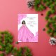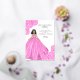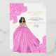 Tarjeta de invitación a ilustracion de moda para fiestas de membrillo de quinceañera rosa. Invitación de la quinceanera española rosa con Relieve metalizado dorado. Añade tu información a esta invitación simple y elegante. Una invitación ideal que combina con el vestido rosa de la quinceañera.