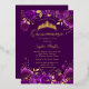 Invitación Con Relieve Metalizado Quinceanera floral con encanto púrpura