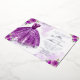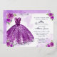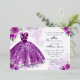 Invitación Quinceanera Invitación Relieve metalizado plateado Floral Purple Gown.