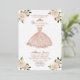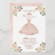 Elegante vestido rosa rubor, floridas invitaciones de fiesta de cumpleaños número 15.