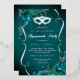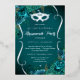 Invitación Con Relieve Metalizado Quinceañera Máscara de Floral Plateada Teal