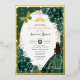 ¡La invitación perfecta para la quinceañera de tu hija está por fin aquí! Esta moda y encantadora invitación a la quinceañera de Relieve metalizado dorado incluye una elegante acuarela con flores de color verde esmeralda, una tiara purpurina de oro y dos mariposas floridas. Haga clic en el botón "personalizar adicional" si desea reorganizar y formatear el estilo y la ubicación del texto.