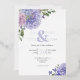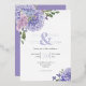 Invitación Con Relieve Metalizado Ramos Florales de Hortensias Lilas y Azules Elegan