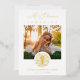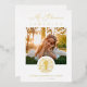 Romantic Real Golden Floral Wreath Photo Metallic Foil Mi Primera Comunión Spanish Remembrance Card with Envelope.