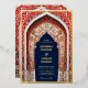 Invitación Con Relieve Metalizado Real Palacio Indio Arco Rojo Azul Boda Oro