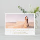Recién Casados Tarjeta de Invitación con Hojas de Oro para Recepción con 4 Fotos - Anuncia tu boda después de tu fuga o ceremonia privada, e invita a tus invitados a tu recepción, con esta tarjeta de invitación de recepción de celebración después de la boda moderna y trendy. Con una foto en la parte delantera colocada detrás de una apertura panorámica, y 3 fotos en la parte posterior, este diseño te da muchas opciones. "recién casados" está escrito debajo en tipografía de letra manuscrita, para un aspecto fresco y casual, junto con tus nombres, fecha y ubicación en hojas de oro. Todos los campos de texto son completamente personalizables: el color, la tipografía, el tamaño y el texto pueden cambiarse para adaptarse a tus necesidades. La parte posterior de la tarjeta presenta toda la información de la invitación y tres fotos verticales de la boda. Copyright Anastasia Surridge Designs, todos