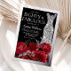 Invitación Con Relieve Metalizado Red Roses & Silver Foil Black 80th Birthday