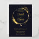 El Celestial Waters Moody Dark Wedding Invitation es una elección bonita y elegante para las parejas que aman la temática celeste, el tema de la luna y las estrellas, el tema de las galaxias. Con un fondo negro profundo salpicado de acentos dorados (¡Relieve metalizado real!), tiene un aspecto soñado y estrellado, complementado por la elegante caligrafía moderna. Esta invitación es a la vez elegante y moderna, por lo que resulta ideal para un día de boda memorable y mágico.