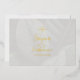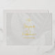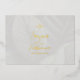 Una manera elegante de enviar invitaciones de boda a amigos y seres queridos. Estas invitaciones a bodas de Relieve metalizado dorado incluyen diseño de hojas tropicales en el frente e información de eventos en el reverso. También hay espacio en la parte posterior para agregar el nombre del destinatario y la dirección de correo. Puede cambiar fácilmente el texto para adaptarlo a sus necesidades. Utilice la plantilla para personalizar.