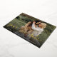 Una tarjeta de fecha moderna para guardar la tarjeta diseñada para acomodar tu foto de compromiso horizontal o horizontal favorita orientada a todo el paisaje. "Guardar la fecha" aparece en letras manuscritas casuales. Personalice con sus nombres, fecha de boda y ubicación del boda debajo de la inscripción en blanco, y agregue su sitio web boda o detalles adicionales a la parte posterior.