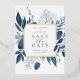 Nuestra boda de invierno de Azure ahorra los marcos de fecha de los detalles de su boda con un elegante borde cuadrado de color agua helada en tonos de marina y azul polvoriento, con un verdadero guarnecido de Relieve metalizado dorado sobre un fondo blanco crujiente. Un enfoque moderno y elegante sobre la tendencia botánica.