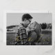 Anunciar sus próximos nupcias con estilo con nuestro guión de Relieve metalizado dorado guardar las tarjetas de fecha. El elegante guardar las fechas muestra su foto de compromiso horizontal con "Save the Date" en un guión de caligrafía de Relieve metalizado dorado. Personalice la parte delantera de la foto y guarde la fecha agregando sus nombres, fecha de boda y ciudad/estado. La tarjeta se invierte para mostrar un patrón follaje blanco con un fondo burdeos o color de su elección.
