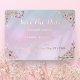 Anuncie su día especial con el Relieve metalizado Real Salvar la Fecha de Pony Pink Peony Vintage Periwinkle, con rosas de acuarela y peonías sobre un fondo rosa y azul de ensueño. La selección de lujosos Relieves metalizados de oro, oro o plata subió un toque de encanto vintage. Esto ahorra la tarjeta de fecha perfecta para una boda en primavera o verano y es parte de una verdadera colección de bodas de Relieve metalizado, incluyendo invitaciones, menús, programas y más, asegurando que su papelería boda esté muy bien coordinada.