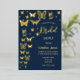 Azul marino, Relieve metalizado dorado, mariposas, ducha de novias, verdadera invitación al Relieve metalizado. Hermosa, elegante y moderna invitación a la ducha de novia.