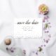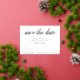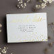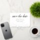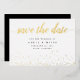 Sencilla y elegante guardar las tarjetas de fecha notifica a sus invitados de su próximo boda en un estilo atemporal. Las tarjetas blancas de crisp incluyen "guardar la fecha" en letras de caligrafía, con sus nombres, fecha de boda y ubicación debajo del tipo serif negro clásico, y una rociada de confetti dorado en la parte inferior. Añada información adicional, como el sitio web de su boda, al reverso con letras blancas en un fondo negro.
