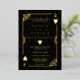 Presenta un estilo Art Déco vintage, un viejo marco rodante de los años 20 de Hollywood roto con el falso Relieve metalizado de oro Fleur-de-lis, corazones, Q y K en dos esquinas (simulando cartas de juego), sobre fondo dorado negro de patrón Art Deco. Se utiliza una redacción especial como en el juego de póquer. Utilice la herramienta Personalize para agregar su información. Para más información, visita por favor mi colección de Casino.