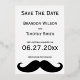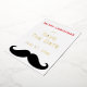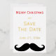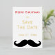 Boda gay Feliz Navidad y salva la tarjeta de fecha con bigote negro y rojo cambiable, Relieve metalizado oro real y texto negro impreso en fondo blanco