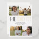 Este moderno Relieve metalizado de oro de fete lo hizo con una tarjeta de invitación de graduación fotográfica es la invitación perfecta de secundaria o graduado universitario. El diseño presenta una elegante tipografía boho con un toque sofisticado en blanco y negro minimalista con lujosos toques de Relieve metalizado dorado prensado. Personalice la parte delantera de la tarjeta con 4 fotos, el nombre de sus graduados, el año escolar y de clase.
