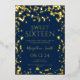 Elegante diseño "Sweet Sixteen / Sweet 16" con Relieve metalizado dorado Confetti, nombre personalizado y texto de detalles.