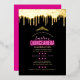 Invitación Con Relieve Metalizado Relieve metalizado dorado Girly Pink 15 cumpleaños