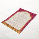 Honre las tradiciones de su boda indio o hindú con nuestras exquisitas tarjetas de Relieve metalizado dorado. Estas elegantes cartas presentan un encantador motivo de flores de loto, símbolo de auspicio en la cultura india e hindú, representadas en un Relieve metalizado dorado brillante. Elija entre una paleta de seis colores cautivadores (rojo, naranja, azul, violeta, rosa y carbón vegetal) para complementar perfectamente su decoración boda. Estas tarjetas son el lienzo perfecto para mostrar tu menú cuidadosamente seleccionado, dejando una impresión duradera en tus invitados mientras celebran tu alegre ocasión.