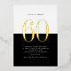 Invite a los invitados a su evento con esta invitación personalizable de 60 años. Presenta un bloque de color blanco y negro con tipografía moderna. Personalice esta moderna invitación de cumpleaños número 60 añadiendo los detalles del evento. Esta invitación a los 60 años de Relieve metalizado dorado está disponible en otros colores de Relieve metalizado.