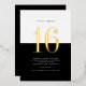Invite a los invitados a su evento con esta personalizable dulce invitación de dieciséis fiestas. Presenta un bloque de color blanco y negro con tipografía moderna. Personalice esta moderna invitación dulce de 16 al añadir los detalles de su evento. Esta invitación a dieciséis Relieves metalizados dorados está disponible en otros colores de Relieve metalizado.