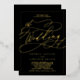 Esta romántica invitación a la boda con marco negro de Relieve metalizado dorado es perfecta para un boda sencillo. El moderno diseño clásico se caracteriza por sus llamativos remolinos y sus extravagantes floridos, con una preciosa y elegante tipografía de Relieve metalizado dorado a mano sellada y un marco de Relieve metalizado formal sobre un fondo negro.
