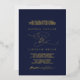 Esta romántica marina de Relieve metalizado dorado florece en la ceremonia nupcial es perfecta para un simple boda. El moderno diseño clásico cuenta con elegantes remolinos y floridos caprichosos, con una preciosa y elegante tipografía de Relieve metalizado dorado con letras a mano sobre un fondo azul oscuro.