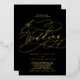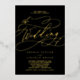 Esta romántica invitación nupcial florida de Relieve metalizado dorado es perfecta para un simple boda. El moderno diseño clásico cuenta con elegantes remolinos y floridos caprichosos, con una preciosa y elegante tipografía de Relieve metalizado dorado con letras a mano sobre un fondo negro.