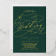 Esta romántica invitación a una boda esmeralda de Relieve metalizado dorado es perfecta para un simple boda. El moderno diseño clásico se caracteriza por sus llamativos movimientos de remolinos y su espléndida y elegante decoración con una tipografía de Relieve metalizado dorado prensada a mano sobre un oscuro fondo verde esmeralda.