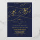 Esta romántica invitación de Relieve metalizado de Relieve metalizado dorado azul marino Mr. y Mrs. boda es perfecta para un simple boda. El moderno diseño clásico cuenta con elegantes remolinos y floridos caprichosos, con una preciosa y elegante tipografía de Relieve metalizado dorado con letras a mano sobre un fondo azul oscuro.