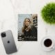 Tarjeta de Invitación personalizada de Relieve metalizado dorado Script 2 Photo Graduation.