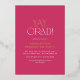Esta moderna invitación a una fiesta de graduación de fotos de Relieve metalizado rosa yay grad fete es perfecta para un simple fiesta de postgrado. El diseño presenta una elegante tipografía boho con un toque sofisticado en rosa cálido brillante y femenino, con lujosos acentos de Relieve metalizado dorado prensado. Personaliza la invitación de tu fiesta de posgrado con una foto del año de postgrado, nombre, colegio y clase.